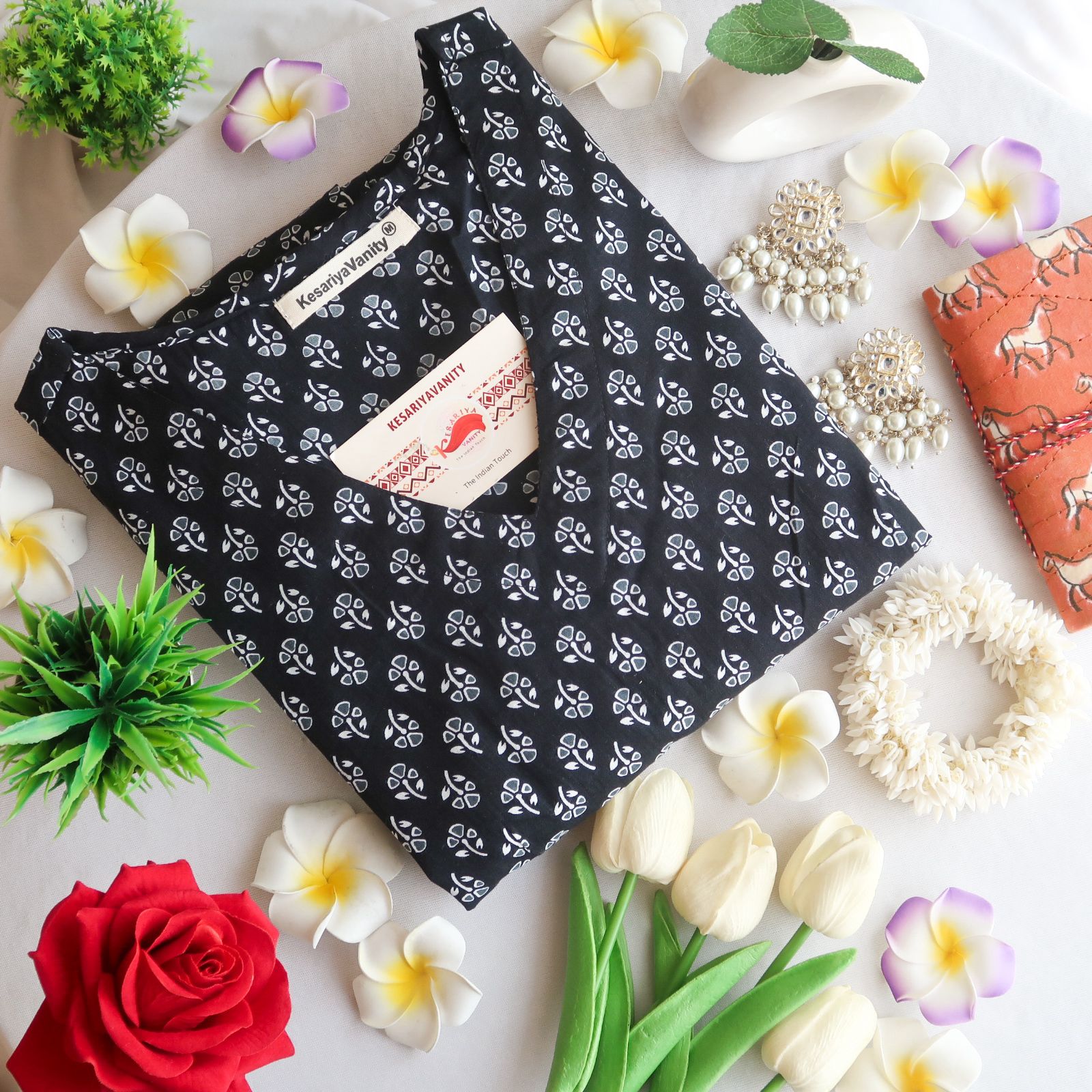 Introducing our timeless long pure cotton kurta, a symbol of understated elegance and versatility. Crafted with high waist side slits reminiscent of the iconic Alia cut, this kurta features a classic black base adorned with delicate white minimal flower motifs prints.
