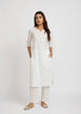 Celebrate timeless style with this beautifully crafted A-line cotton kurta, blending traditional artistry with modern elegance. The soft white base is enhanced with intricate block prints, while delicate machine embroidery adds a refined touch that elevates its graceful charm.
